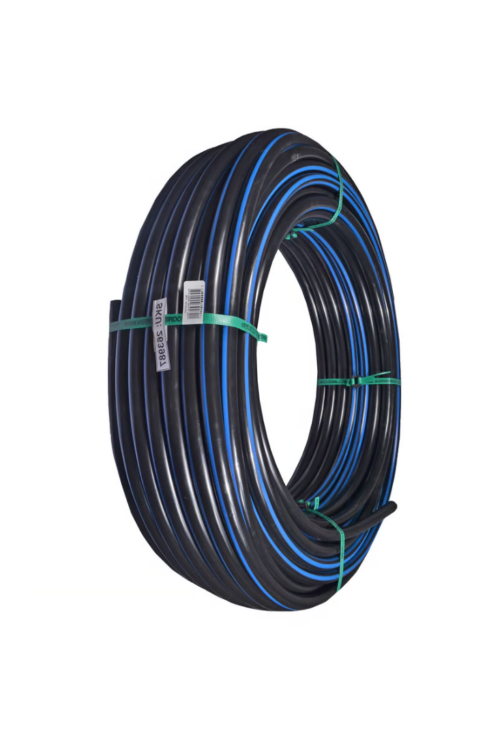 Manguera HDPE – NEGRO C/FRANJA AZUL 60% material virgen + 40% reciclado
